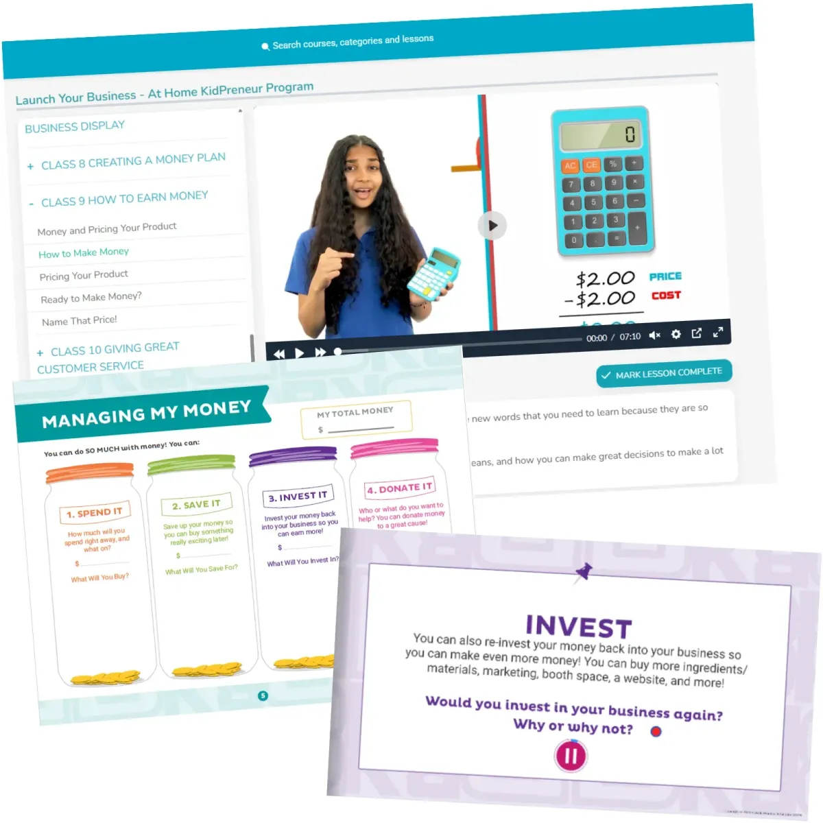 The only additional materials are whatever they choose to use for their business. For example, if they decide to sell slime, you’d purchase the basic supplies and packaging from a craft or discount store—and then they get to experience the best part: earning that money back through real sales to cover their startup costs!